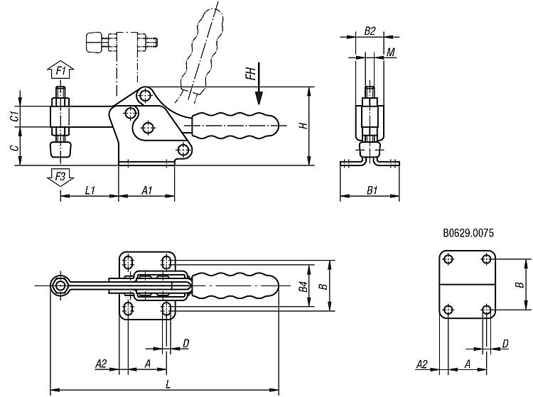 Datenblatt B0629 Schnellspanner horizontal mit waagrechtem Fuß und fester Andruckspindel 252 kB