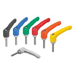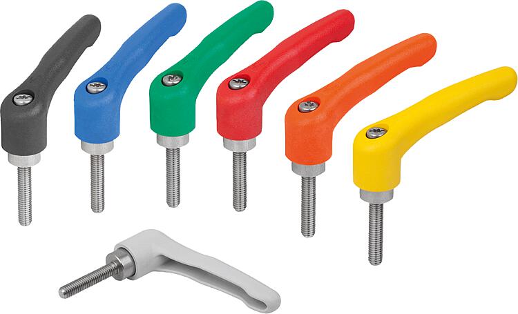 Clamping levers, plastic with external thread, threaded insert stainless steel