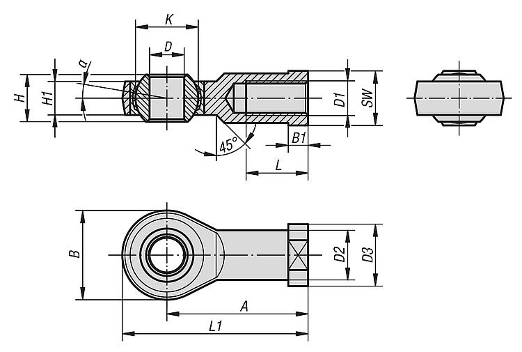 Version:Electro zinc-plated.Note:The rod end bearing is maintenance-free. The connection dimensions comply with DIN 648 Form Series E.Special features: