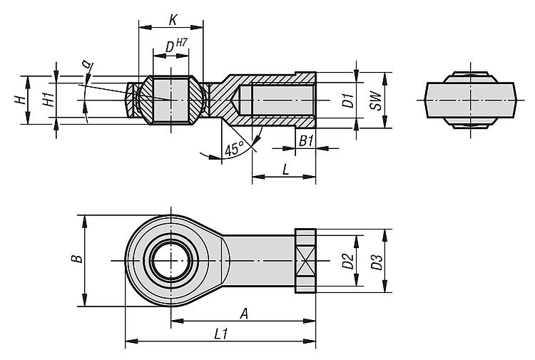Version:Electro zinc-plated.Note:The rod end bearing is maintenance-free. The connection dimensions comply with DIN 648 series KJ.