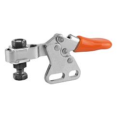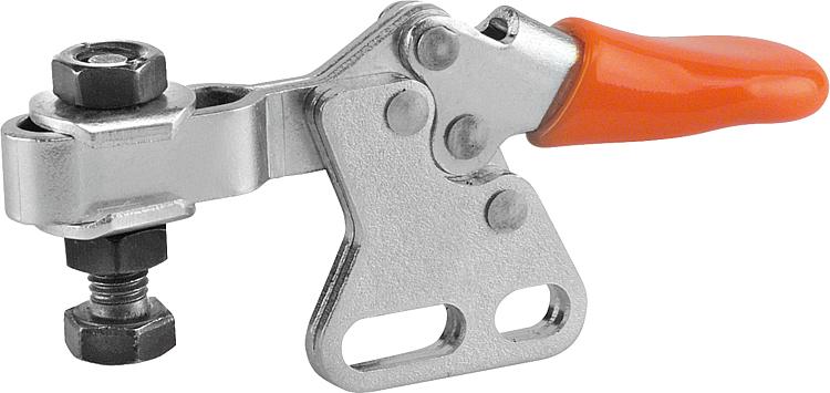 Toggle clamps mini horizontal with straight foot and adjustable clamping spindle