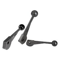DescriptionMaterial:Carbon steel 1.7220. Ball grip plastic.Version:Tempered and black oxidised.Note:Suitable hinge pin, see B0430. The cam lever is an eccentric lever that moves along a logarithmic spiral. Its clamping properties are even over the entire contact surface of the cam.Special features: DownloadHere is all the information as a PDF datasheet: