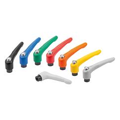 Clamping levers, die-cast zinc with internal thread and protective cap, threaded insert black oxidised steel