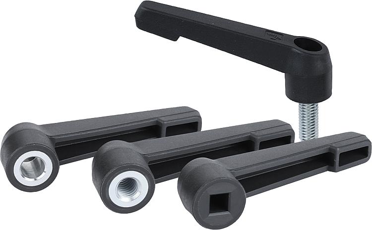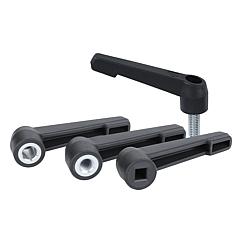 Clamping levers, plastic, non-adjustable with square socket, insert blue passivated steel
