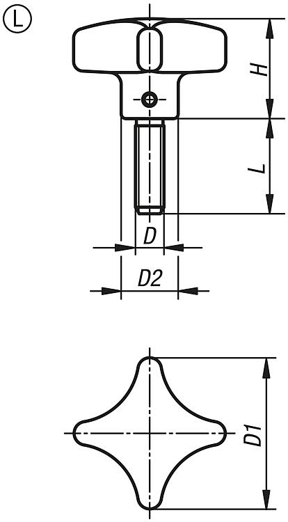 Palm grips DIN 6335, grey cast iron, Form L, with external thread