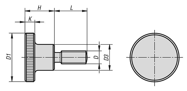 Note:* For these lengths, the knurled screw has a shaft (no thread undercut, thread length according to DIN).Special features: