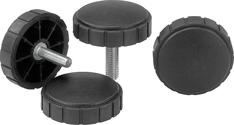DescriptionProduct description:Due to their extremely flat design, these grips can be used in very cramped spaces. The fluting around the edge improves gripping.Material, version:Grip black hard thermoplastic.