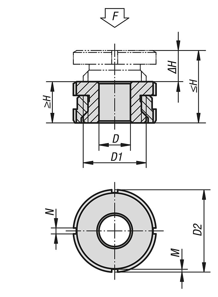 The static additional load F1 is effective after deducting the tensioning force (screw 8.8, µm = 0.125) from the total load F.