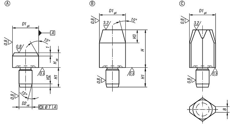 Form B: Cylindrical locating pin