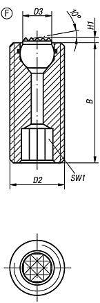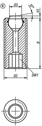 Self-aligning pads, adjustable, with O-ring and hexagon socket Form K, flattened POM ball smooth