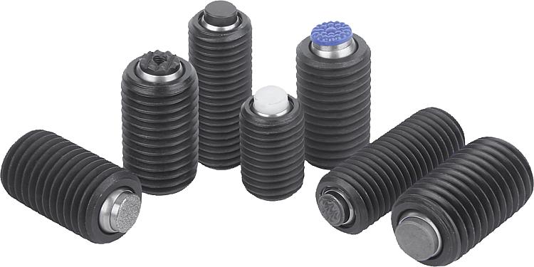 Self-aligning pads, adjustable, with O-ring, exchangeable inserts, hexagon socket, Form F, flattened ball with diamond grip