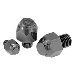 Self-aligning pads, swivel angle 12°, Form F, with external thread, flattened ball, serrated face