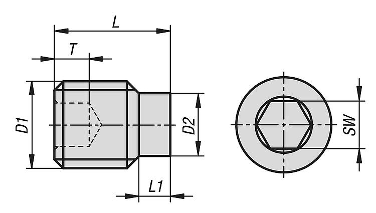 DescriptionMaterial:Steel, stainless steel A2 or stainless steel A4.Version:Steel grade 45 H, bright (blackened) or electro zinc-plated.