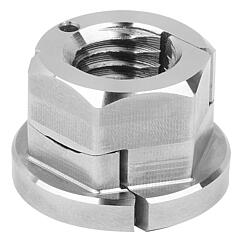 DescriptionProduct description:Two-part hex nuts enable particularly rapid and easy installation - even with long threaded rods, hard-to-reach places or damaged threads. They can be fitted from the side and tightened without the need to remove other components. Ideal for maintenance in corrosive environments or applications with limited processing options. The two halves are secured by a lock, but can be separated using the assembly tool. The strengths are in accordance with industry standards.Material:Carbon steel.Version:Bright.Advantages:- Saves time by repetitive assembly, pre-assembly and set-ups.
