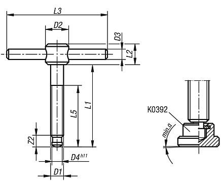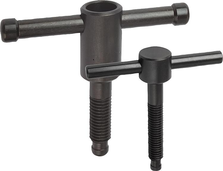 T-thrust screws with fixed or sliding T-bar, DIN 6304 or DIN 6306