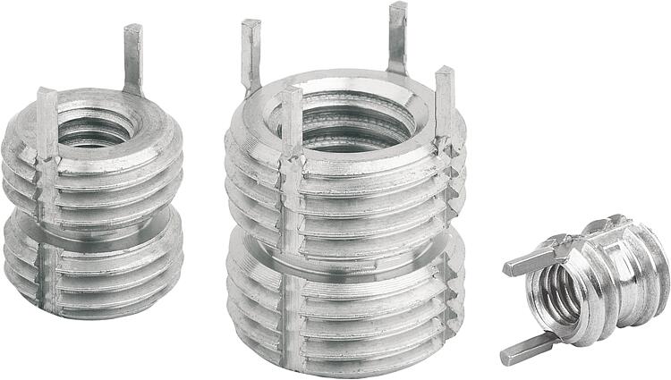 Reinforced threaded inserts are suitable for use in various materials, including light metals and casting.