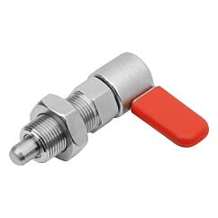 Cam-action indexing plungers, stainless steel with internal guide, Form B, without grip cap, with nut