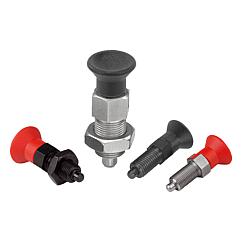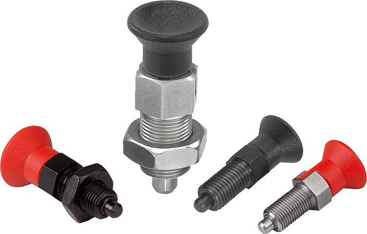 Indexing plungers, steel or stainless steel with plastic mushroom grip