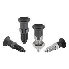 Premium - Indexing plungers, steel or stainless steel with plastic mushroom grip, cylindrical indexing pin and locking slot