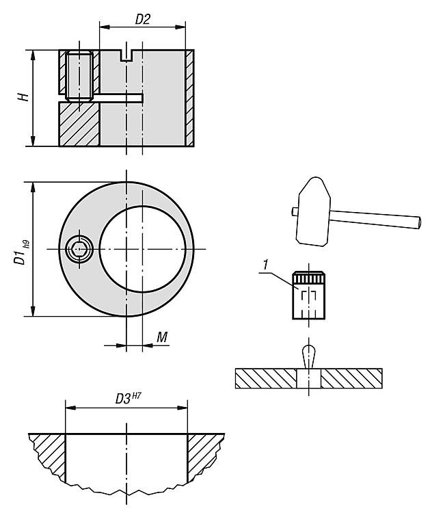 DescriptionMaterial:Steel.Version:Black oxidised.Note:Eccentric bushes enable lateral spring plungers to be precisely positioned with regard to the workpiece.Drawing reference: