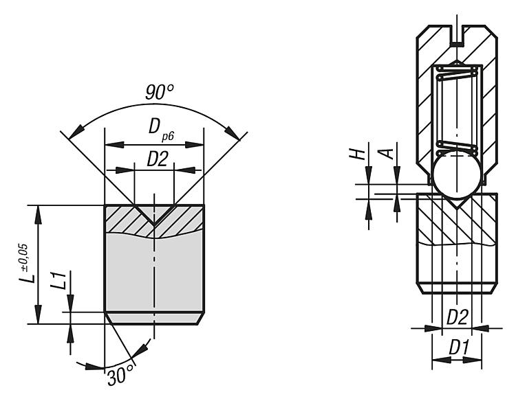 DescriptionMaterial:Steel.Version:Bright, hardened.Note:If abrasion-resistant and exact locking is necessary, locators can be used together with spring plungers, especially with strong spring force.Special features: