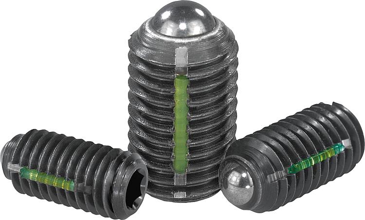 Spring plungers with hexagon socket and ball, steel, standard spring force, with thread lock