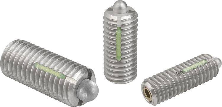 Spring plungers with hex socket and thrust pin, stainless steel, with thread lock