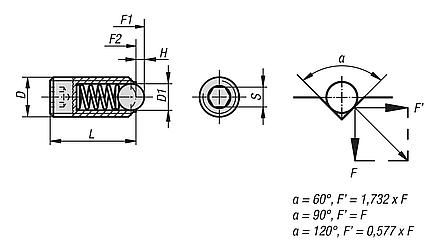 Spring plungers with hexagon socket and ball, steel, standard spring force