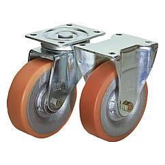 Steel plate swivel and fixed castors with Extrathane® tread,...