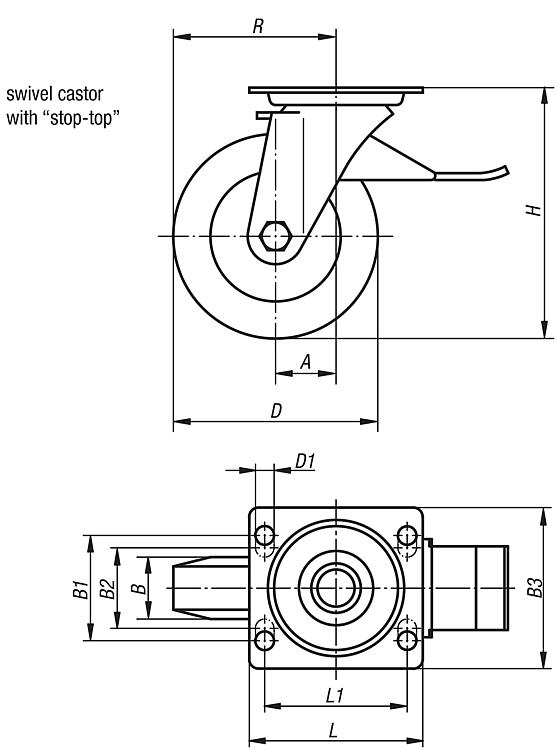 B0490Steel plate swivel and fixed castors with polyamide wheels,... |
