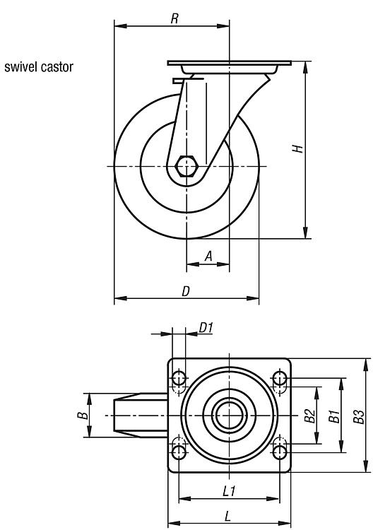B0489Steel plate swivel and fixed castors with polyamide wheels,... |