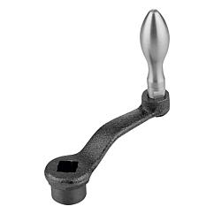 Crank handles offset similar to DIN 468, Form F, with fixed grip