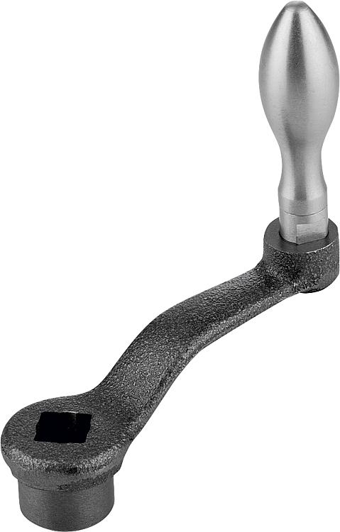 Crank handles offset similar to DIN 468, Form D, with revolving grip