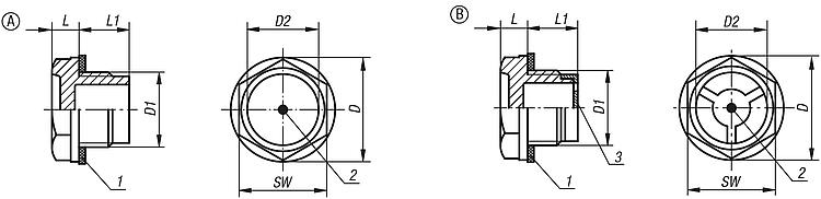 Oil level sight glasses, Form A, without reflector