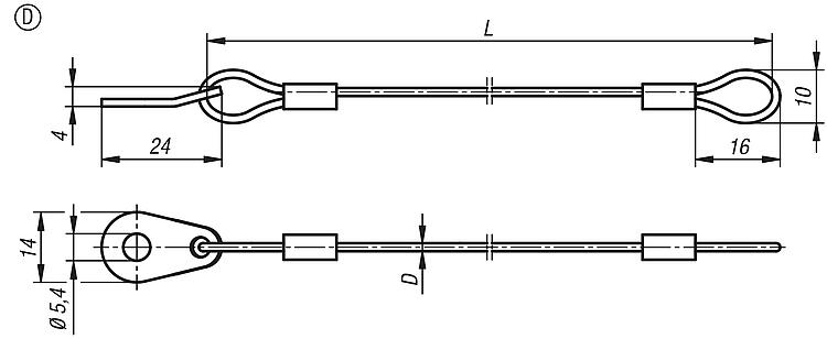 Retaining cable Form D, with eye and strap