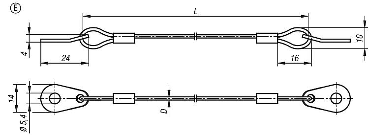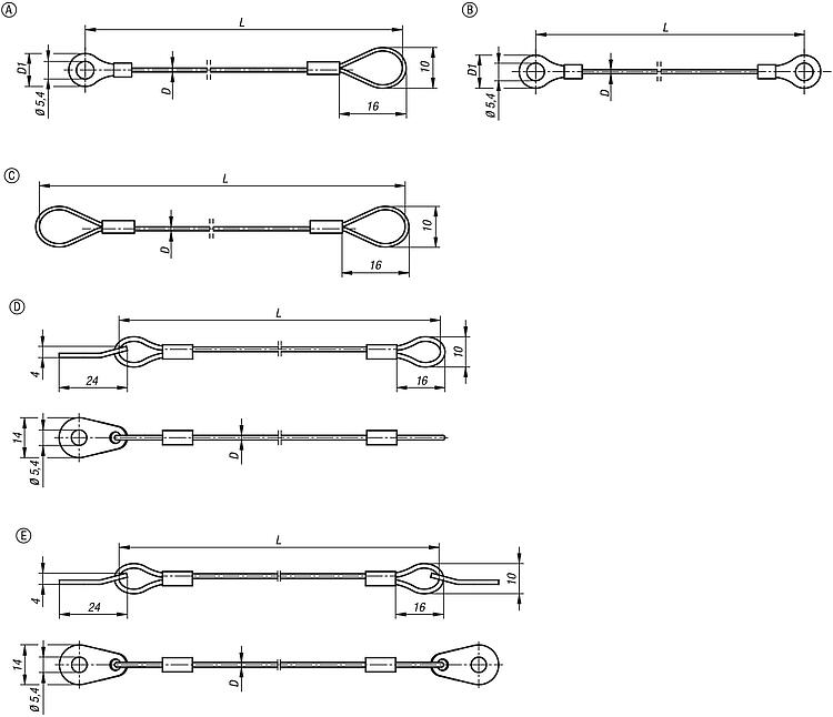 Retaining cables Form C, with eyes both ends