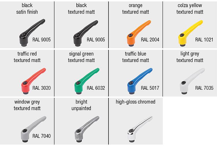 Clamping levers, die-cast zinc with internal thread, threaded...