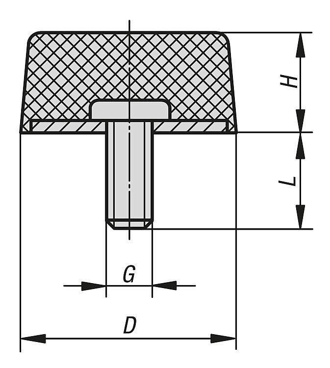 Rubber buffers type K conical with external thread