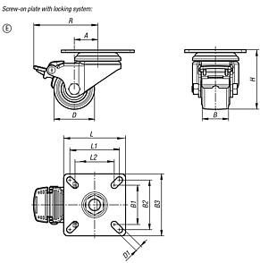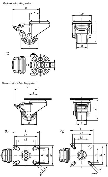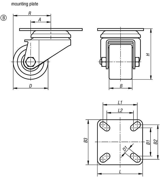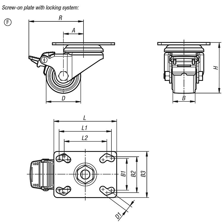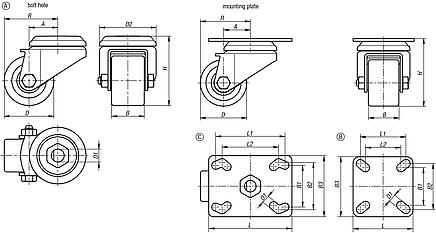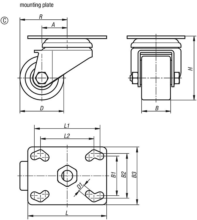 Steel plate swivel and fixed castors with polyamide wheels, standard version